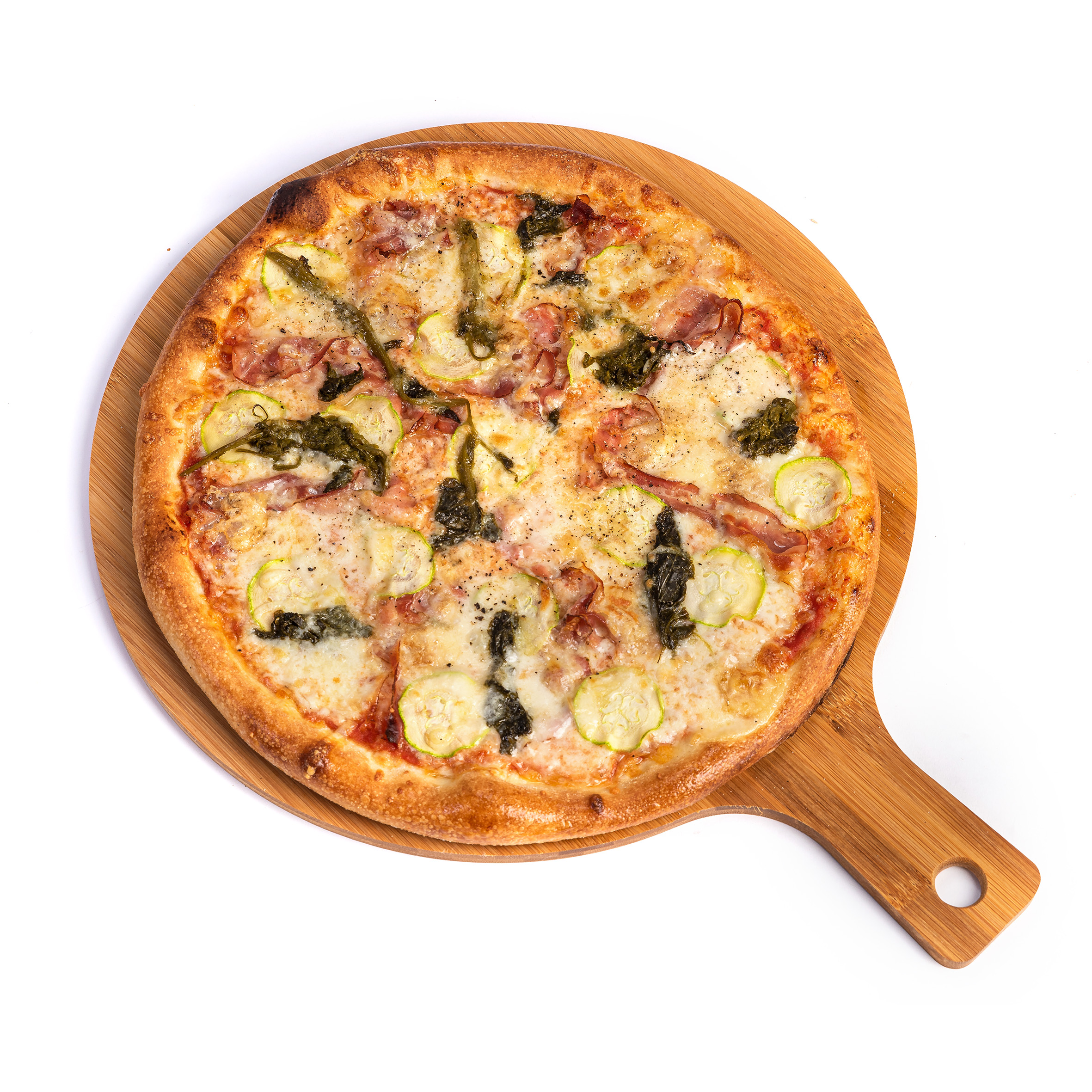 sos rosii, mozzarella, pancetta, dovlecel, gorgonzola dolce, friarielli napoletan, piper proaspat